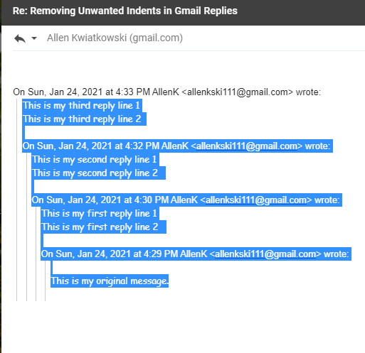 A So So Workaround To The Inability To Remove The Indents In Gmail Replies Gmail Community